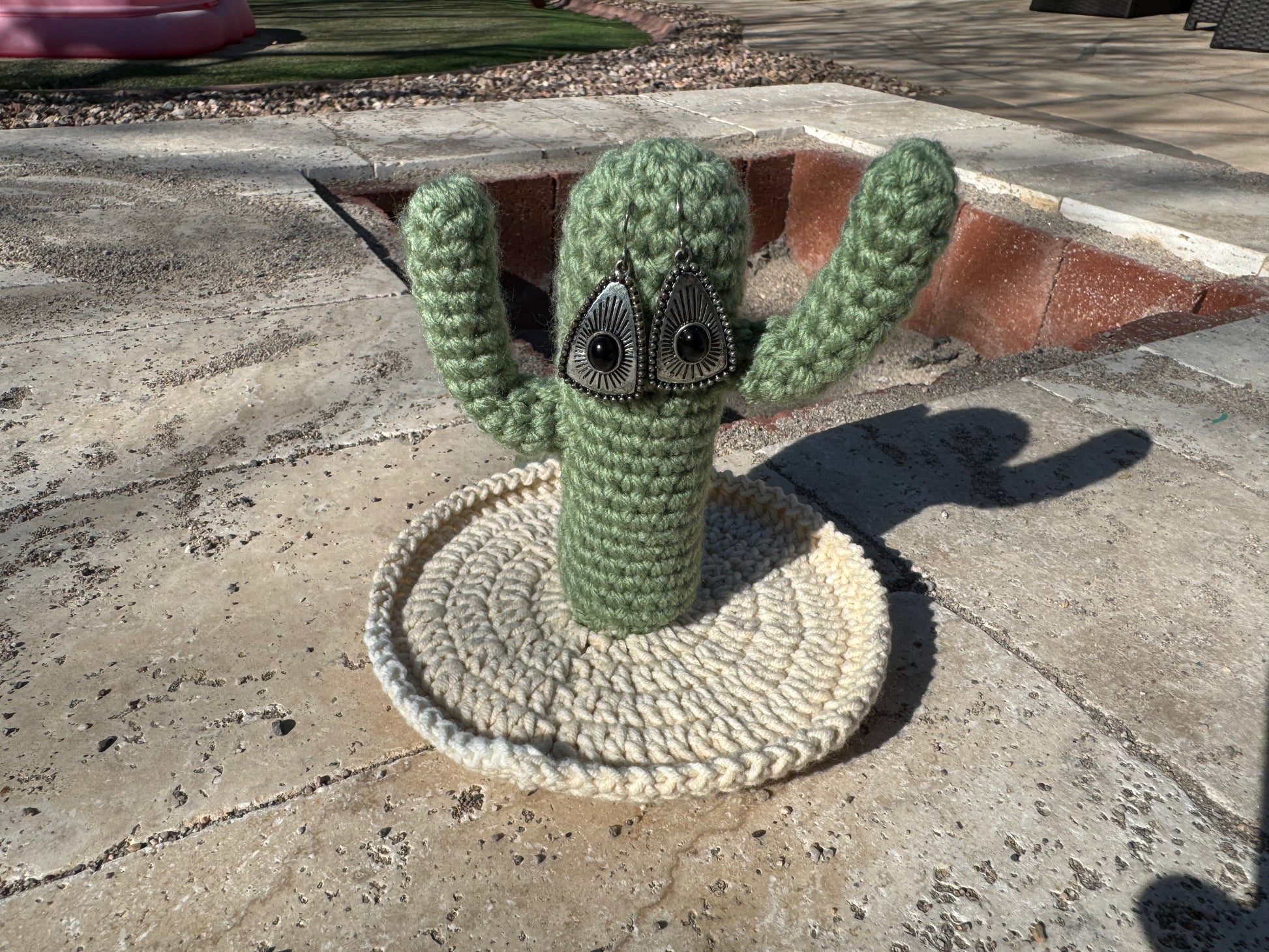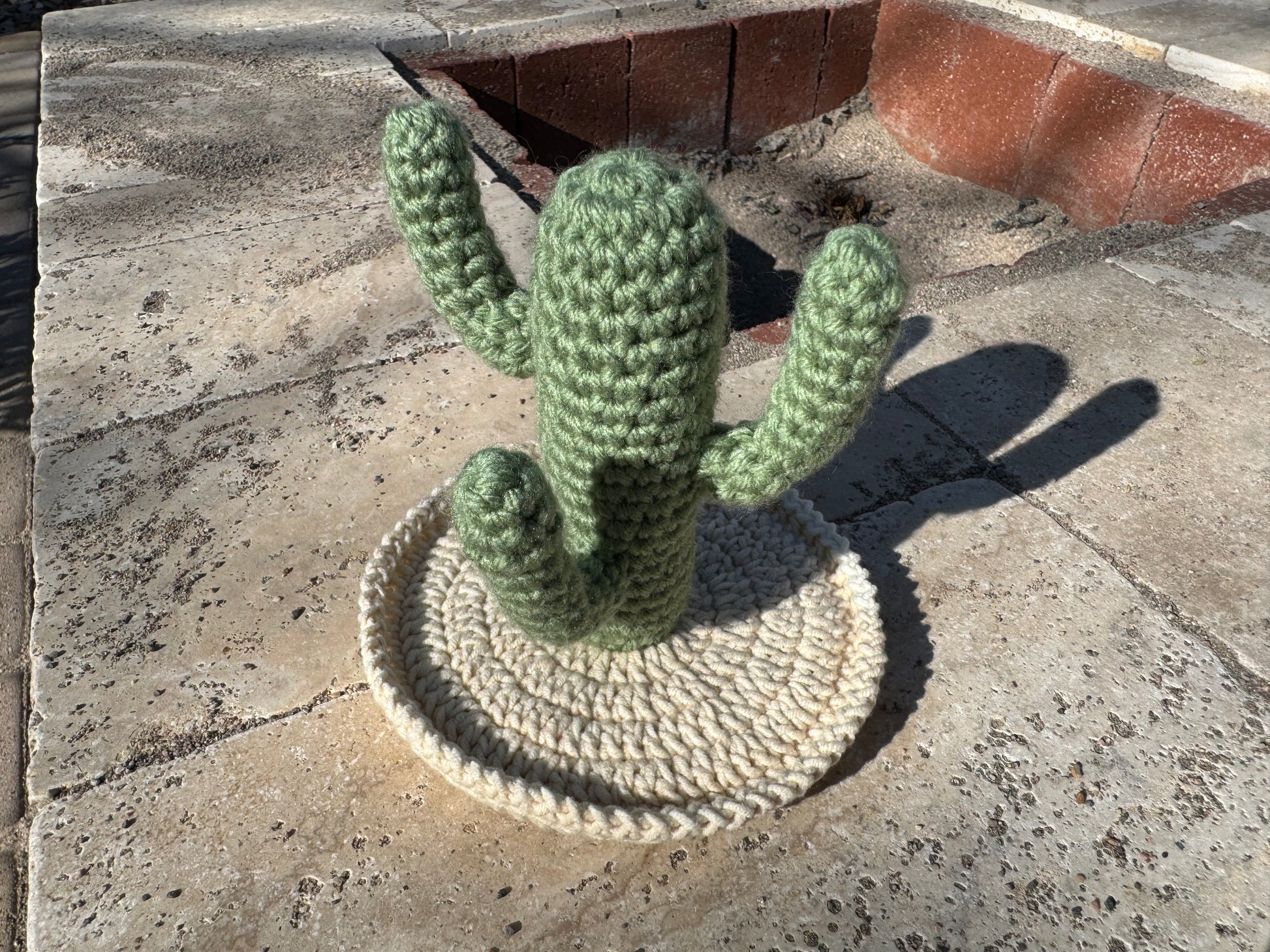 NOTE: This takes time! It's approximately 5 inches tall by nearly 5 inches wide. The Cacti are stuffed with poly-fill. Made with tons of love! Base color and style may vary!