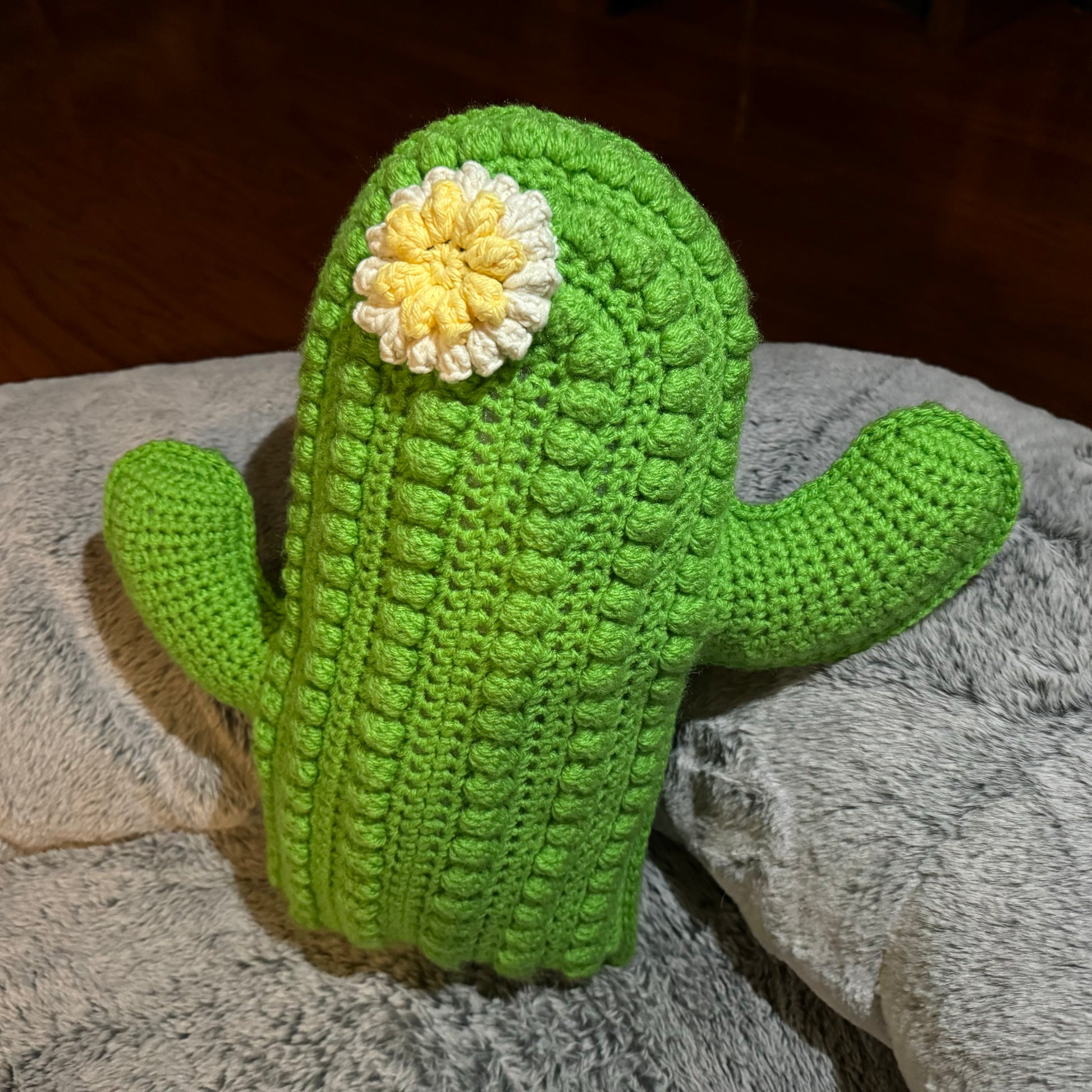 NOTE: This takes time! It's approximately 14.5 inches tall by nearly 7.5 inches wide, not including the arms. The pillow is about 4 inches thick. The Cacti are stuffed with poly-fill, and made with tons of love! Flower color and style may vary!