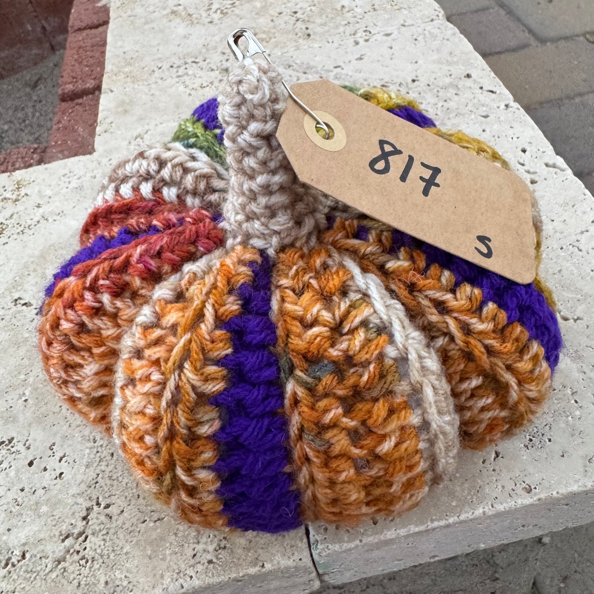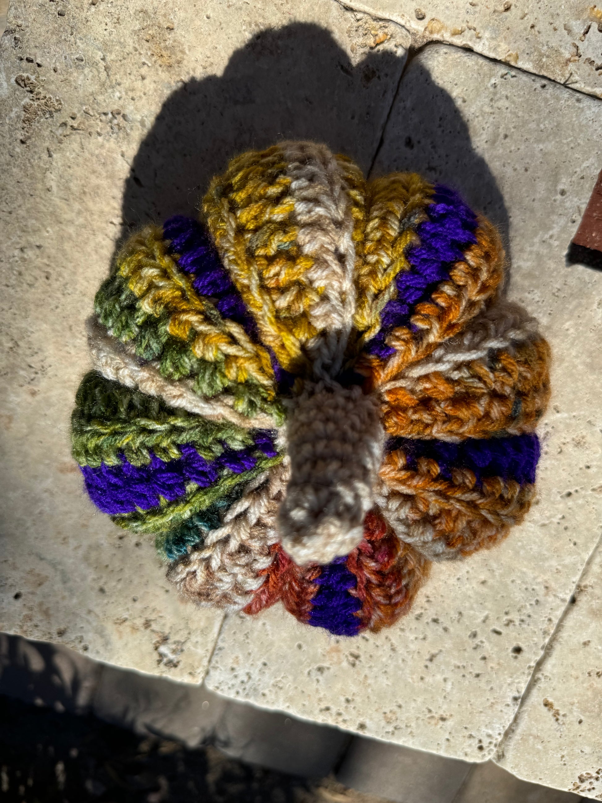 These beauties are created with size 4 yarn, unlike our mystery, custom & rainbow pumpkins. We call those the OG's. This is Mike's new line of pumpkins. He's using smaller yarn which means a lot more stitches, and many more hours of work. They have a perfect pumpkin shape!