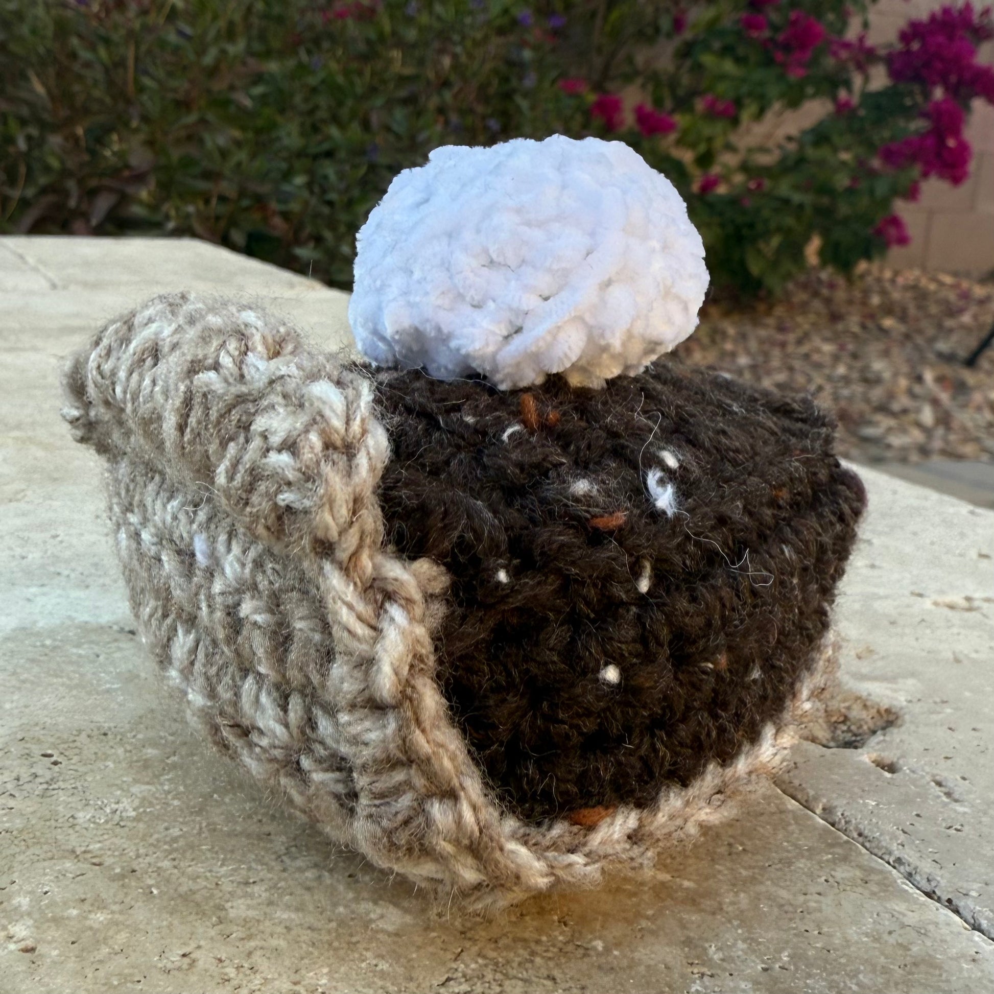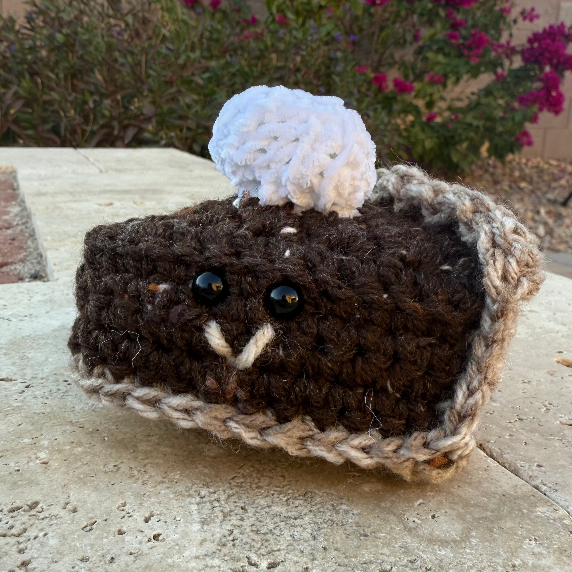 Indulge in our Dark Chocolate Cheesecake Pie, made with sea salt and a touch of hand-crocheted finesse. Topped with a smile and a dollop of cream, it's the perfect sweet treat to satisfy your cravings.