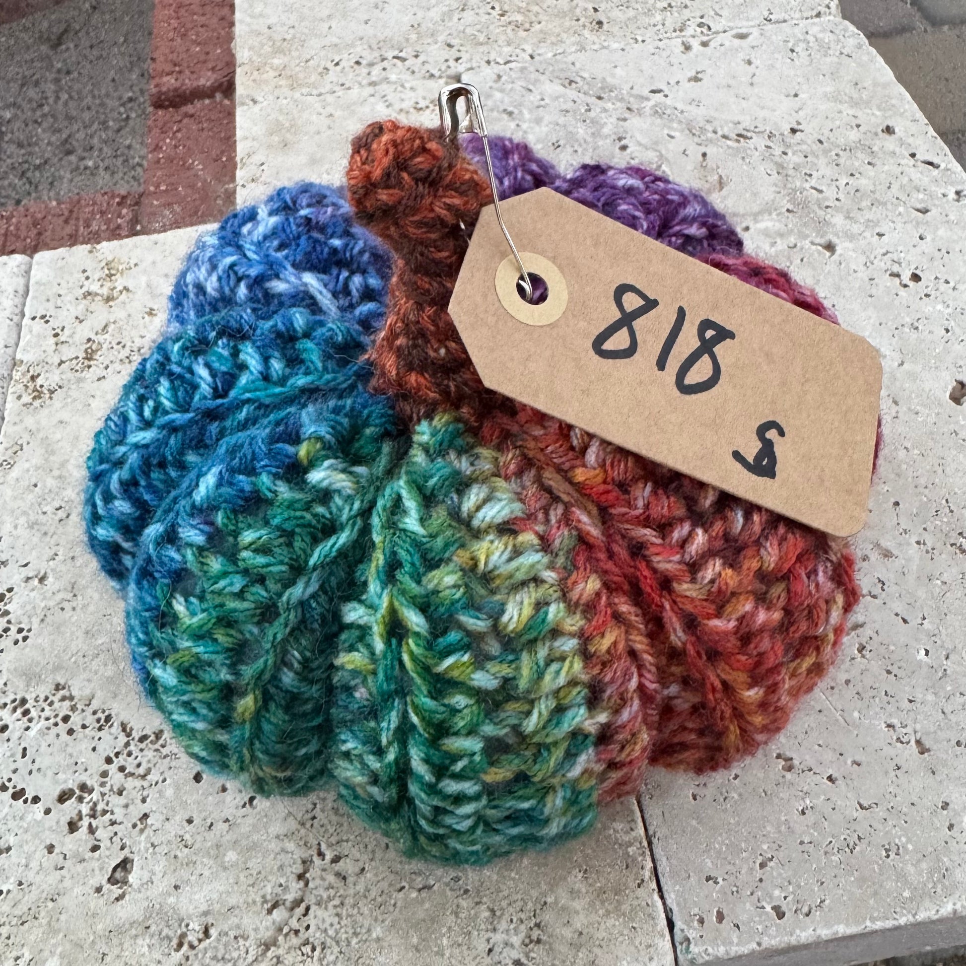 These beauties are created with size 4 yarn, unlike our mystery, custom & rainbow pumpkins. We call those the OG's. This is Mike's new line of pumpkins. He's using smaller yarn which means a lot more stitches, and many more hours of work. They have a perfect pumpkin shape!