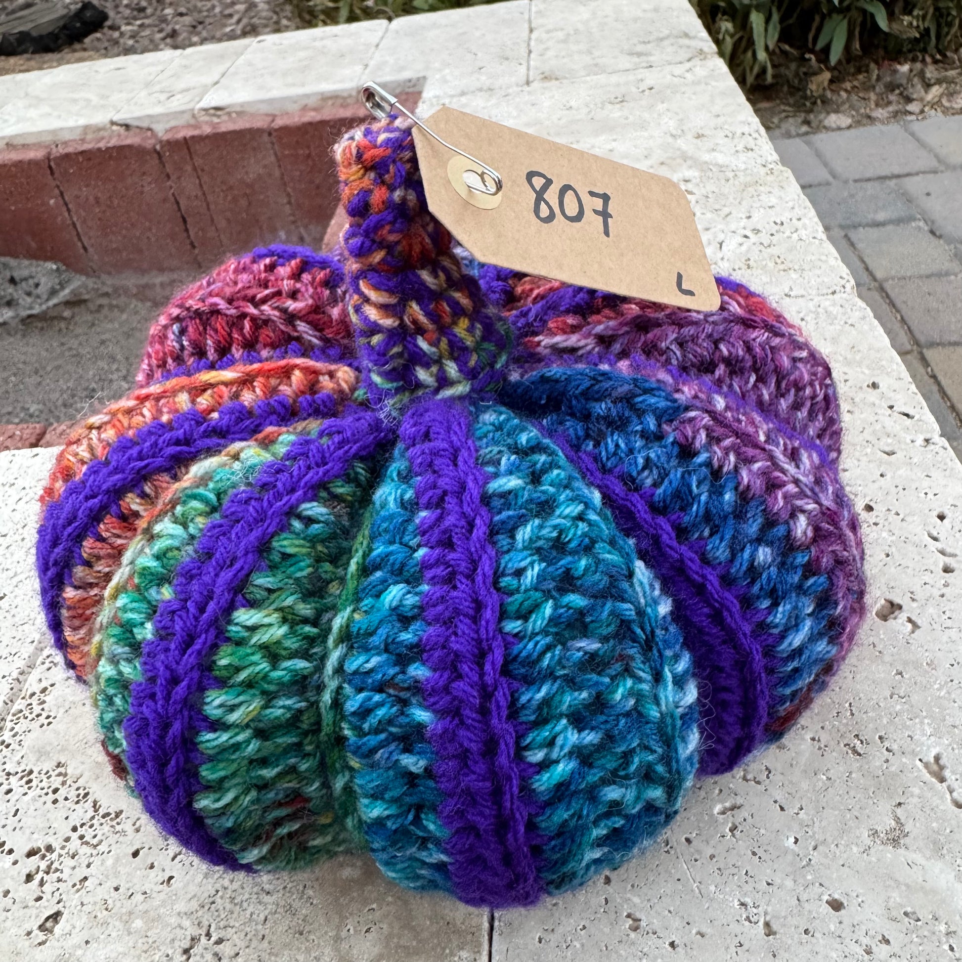 This is the only one of its color palette. This purple and rainbow pumpkin took a few days to create, stitch by stitch. Tiny little stitches. It's ready to be shipped to you!